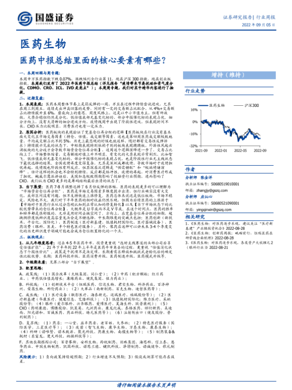【国盛证券】【20220905】医药生物行业周报:医药中报总结里面的核心要素有哪些?-24页