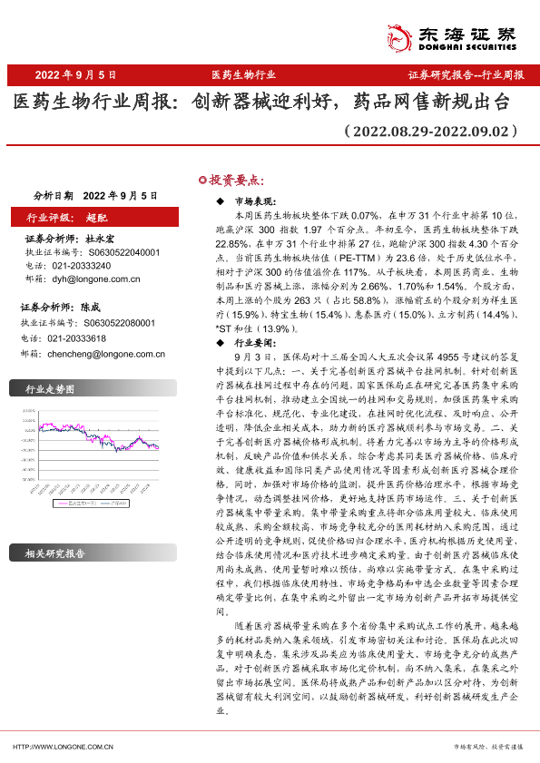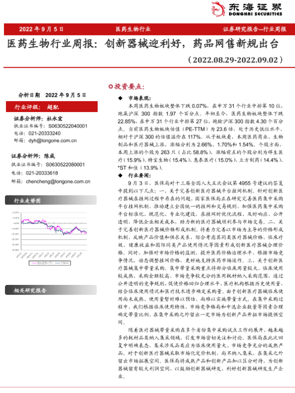 【东海证券】【20220905】医药生物行业周报:创新器械迎利好,药品网售新规出台-10页