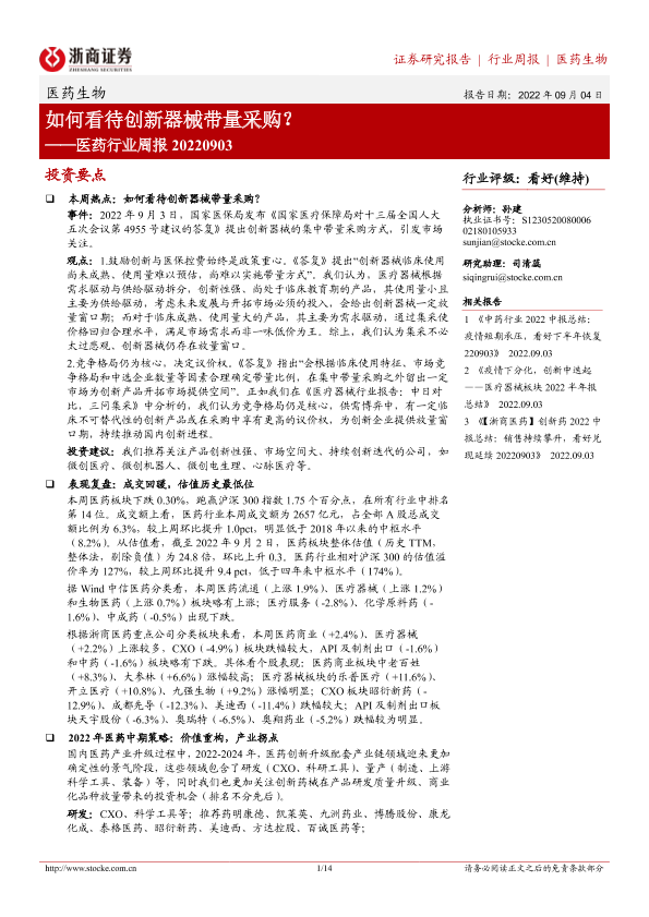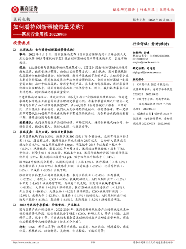 【浙商证券】【20220904】如何看待创新器械带量采购-14页