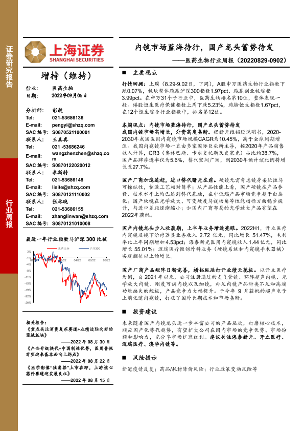 【上海证券】【20220905】内镜市场蓝海待行,国产龙头蓄势待发-26页