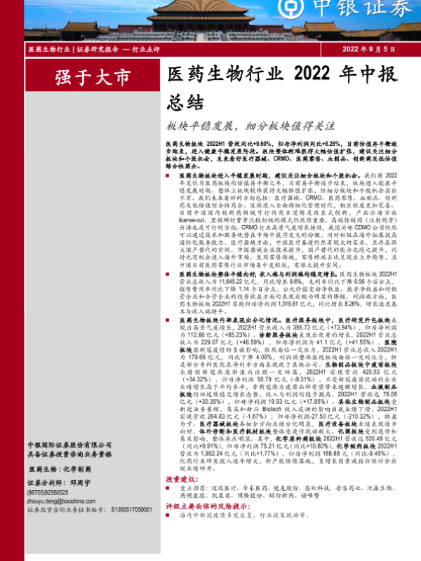 【中银证券】【20220905】医药生物行业2022年中报总结:板块平稳发展,细分板块值得关注-18页