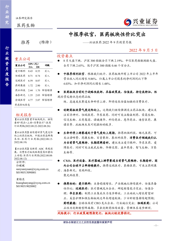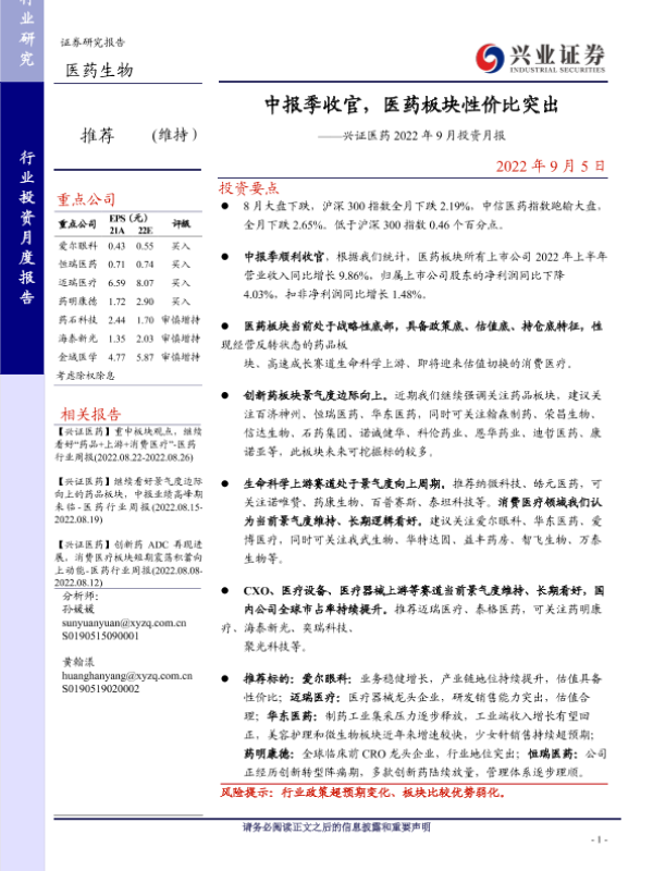 【兴业证券】【20220905】中报季收官,医药板块性价比突出-21页
