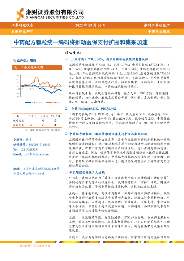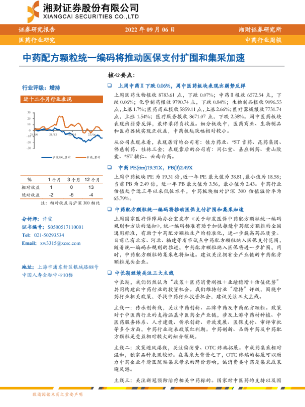 【湘财证券】【20220906】中药配方颗粒统一编码将推动医保支付扩围和集采加速-12页