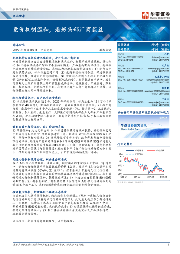 【华泰证券】【20220908】医药健康动态点评:竞价机制温和,看好头部厂商获益-4页