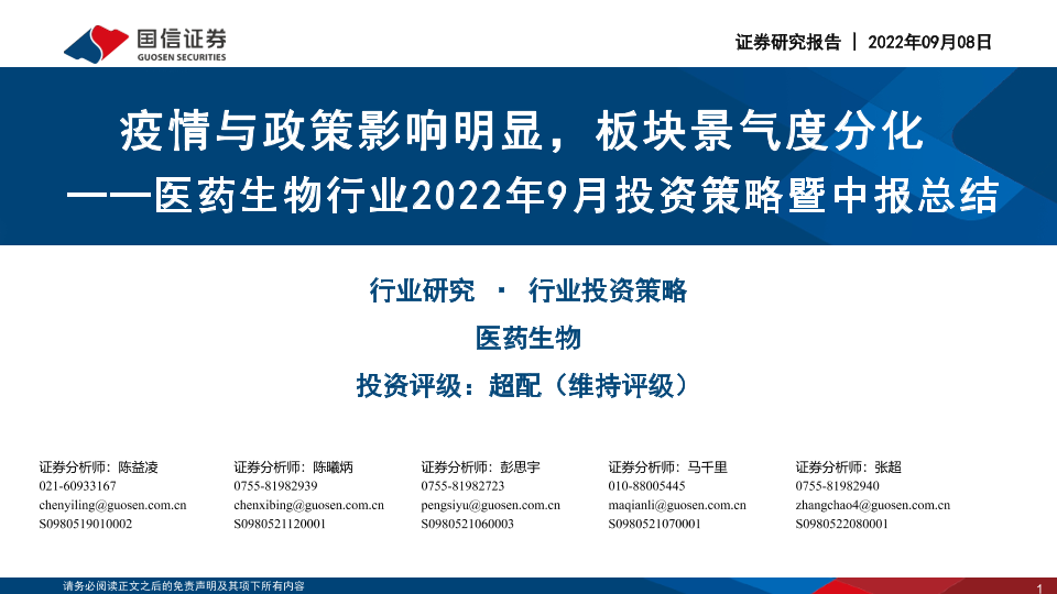 【国信证券】【202209】医药生物行业2022年9月投资策略暨中报总结-58页