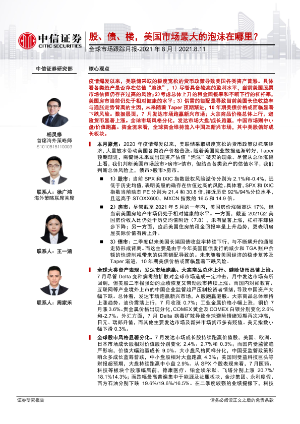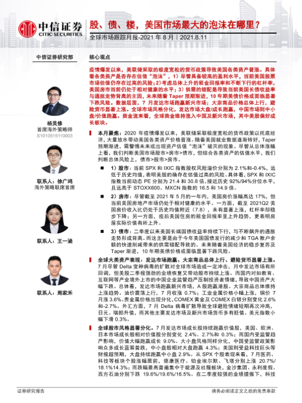 【中信证券】【20210811】全球市场跟踪月报:2021年8月-股、债、楼,美国市场最大的泡沫在哪里?-25页