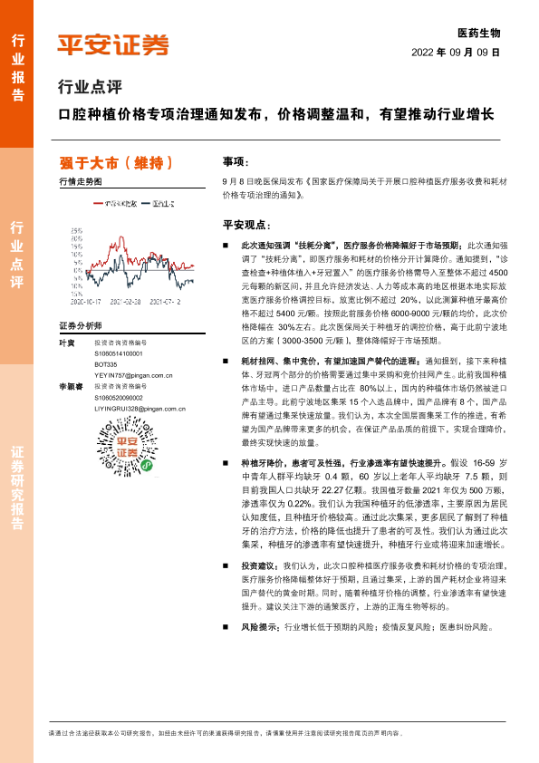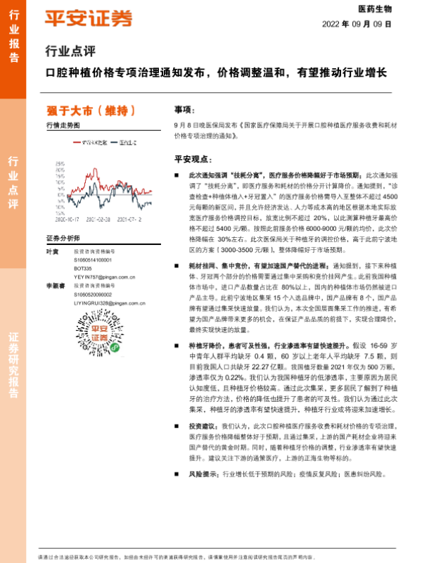 【平安证券】【20220909】医药生物行业点评:口腔种植价格专项治理通知发布,价格调整温和,有望推动行业增长-2页