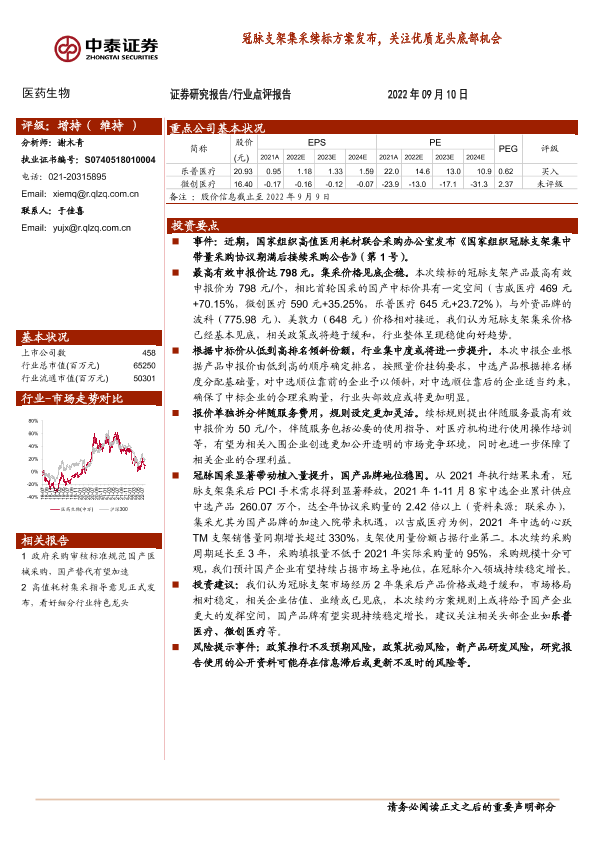 【中泰证券】【20220910】冠脉支架集采续标方案发布,关注优质龙头底部机会-2页