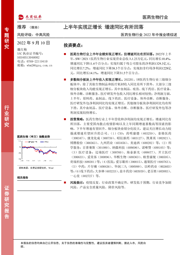 【东莞证券】【20220910】医药生物行业2022年中报业绩综述-23页
