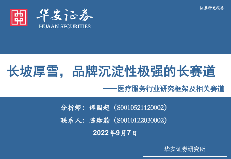 【华安证券】【20220907】长坡厚雪,品牌沉淀性极强的长赛道——医疗服务行业研究框架及相关赛道-143页