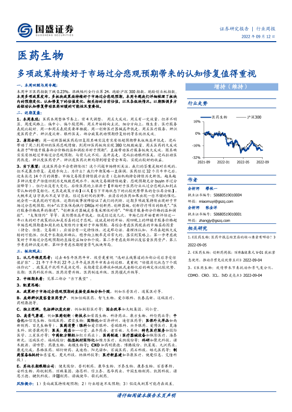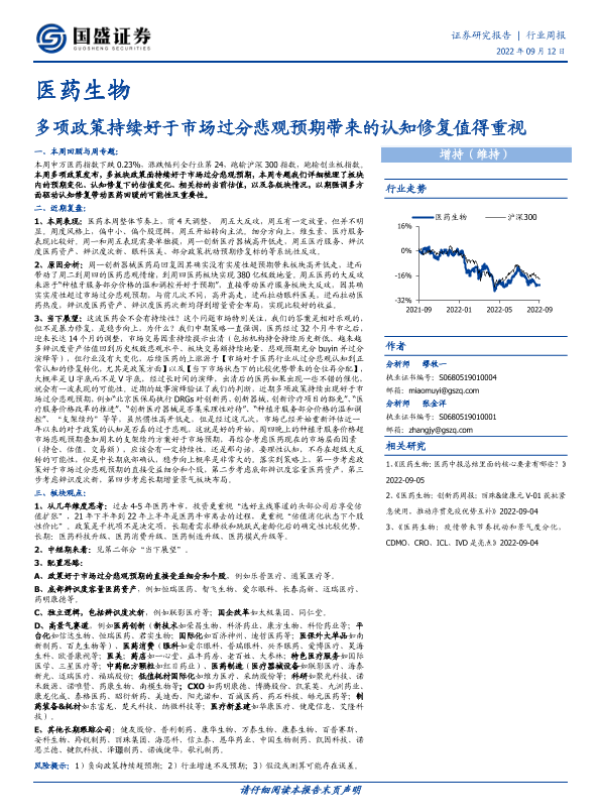 【国盛证券】【20220912】医药生物行业周报:多项政策持续好于市场过分悲观预期带来的认知修复值得重视-29页