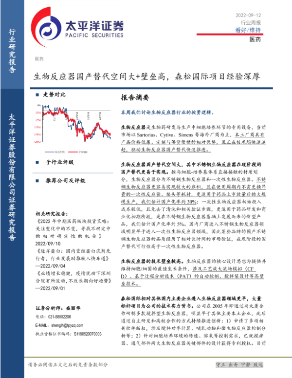 【太平洋证券】【20220912】生物反应器国产替代空间大+壁垒高,森松国际项目经验深厚-16页