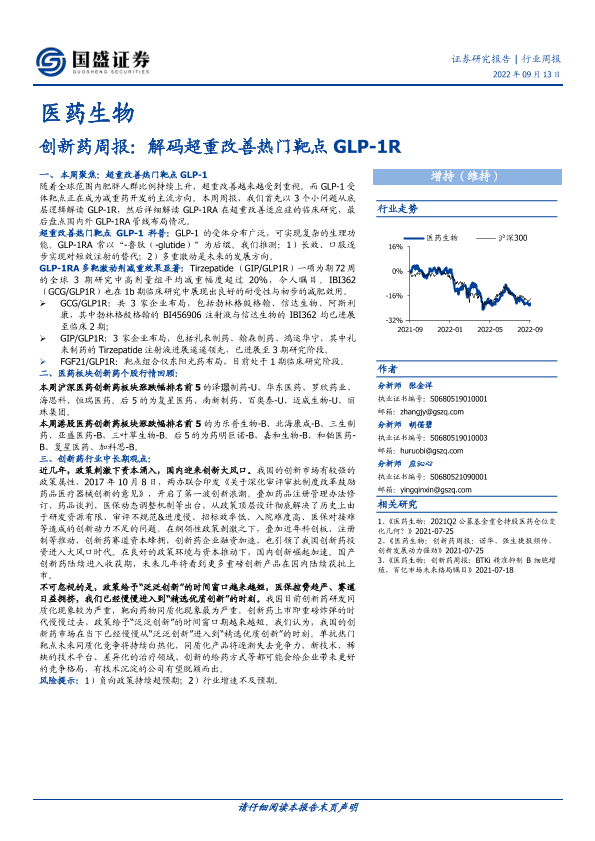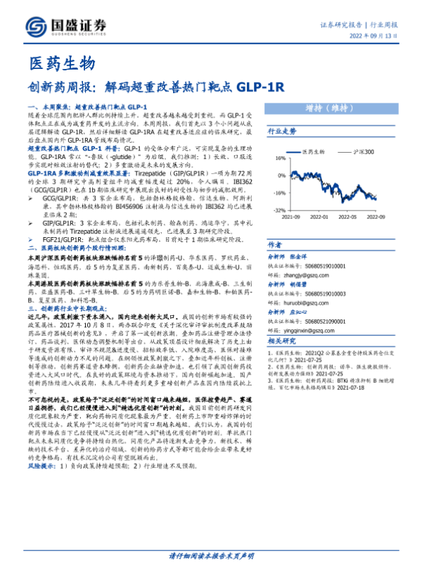 【国盛证券】【20220913】创新药周报:解码超重改善热门靶点GLP-1R-15页