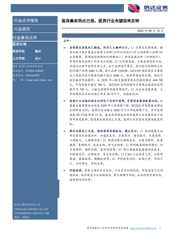 【信达证券】【20220913】医药生物行业事项点评:医保集采拐点已现,医药行业有望迎来反转-3页
