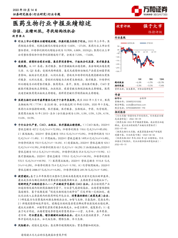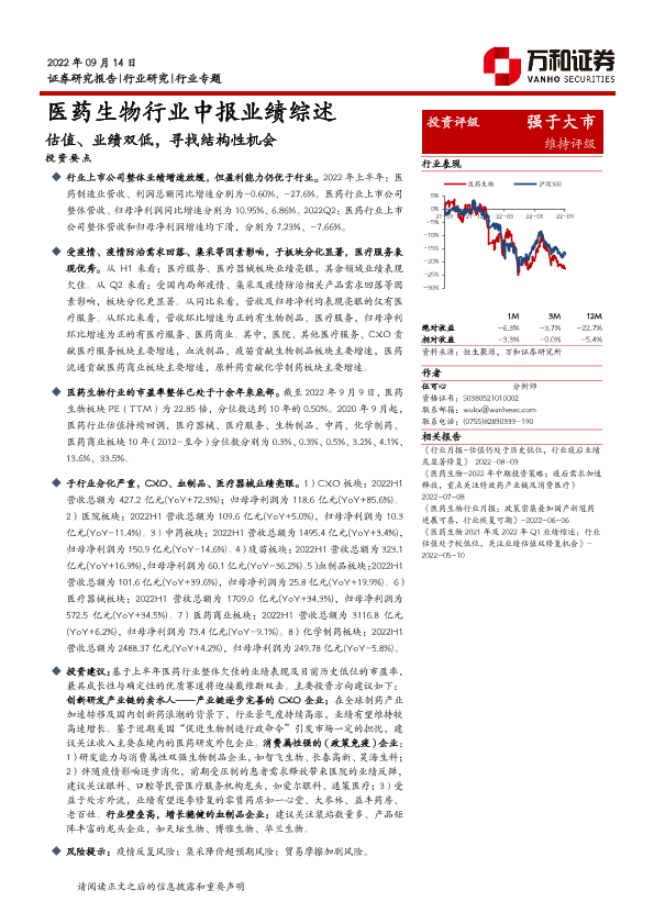 【万和证券】【20220914】医药生物行业中报业绩综述:估值、业绩双低,寻找结构性机会-32页