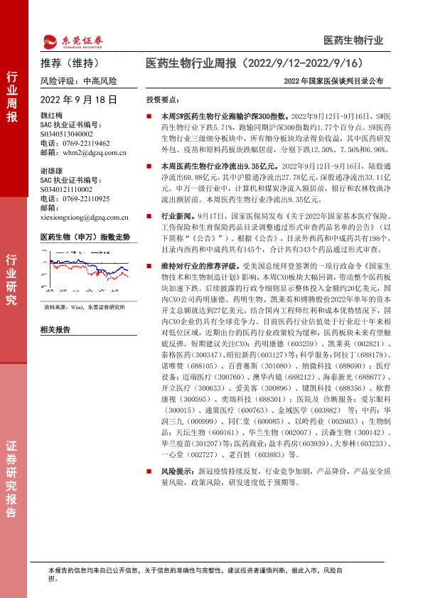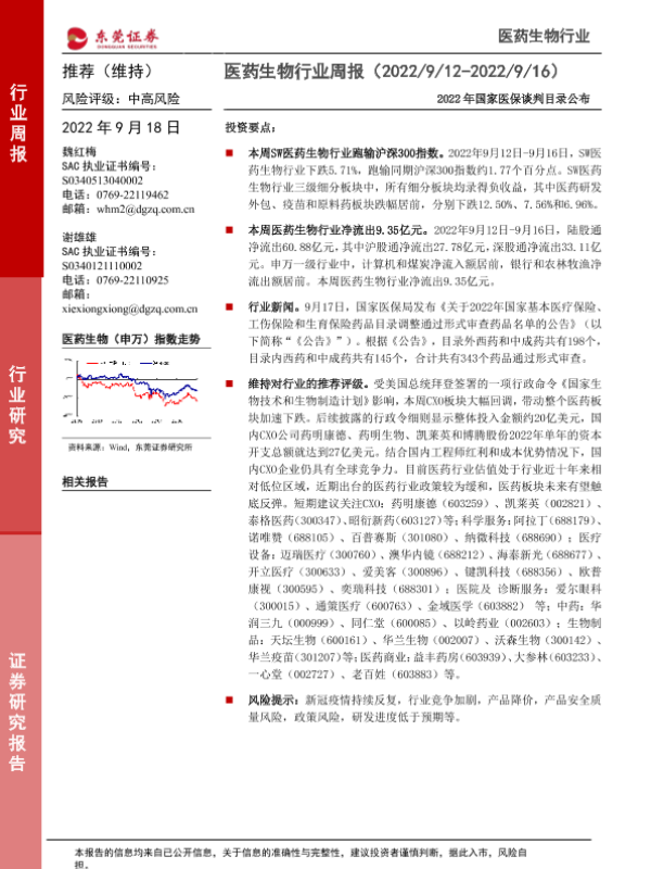 【东莞证券】【20220918】医药生物行业周报:2022年国家医保谈判目录公布-10页