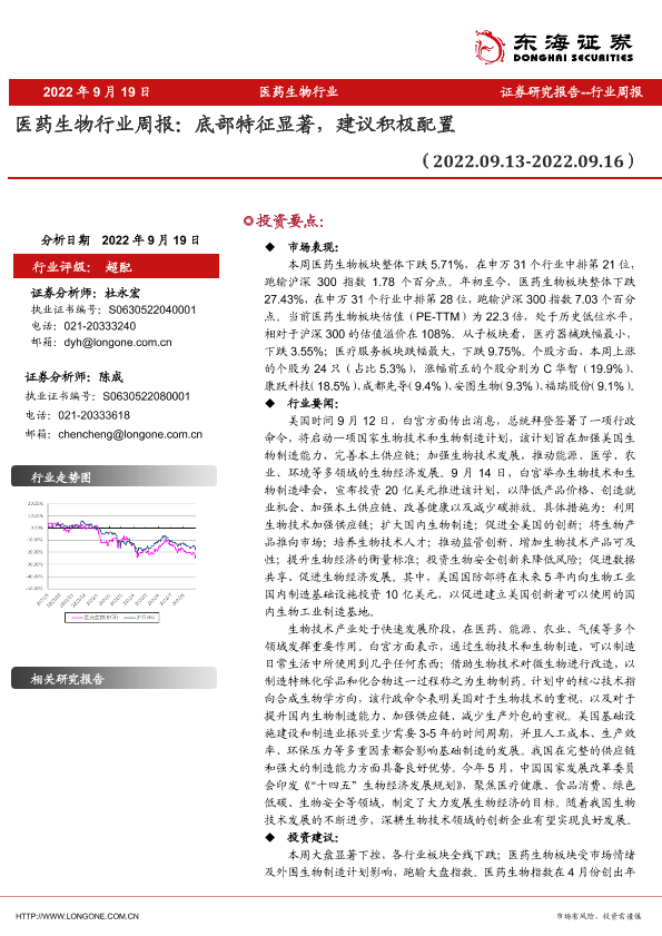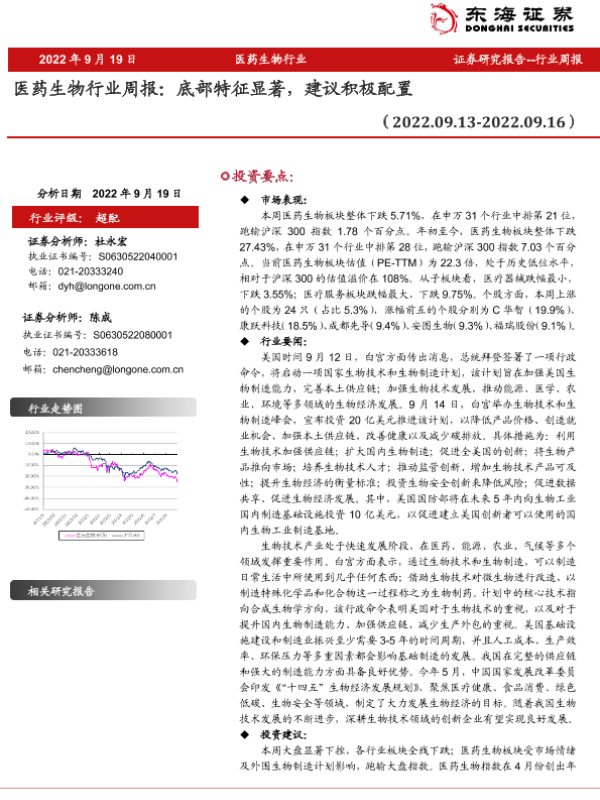 【东海证券】【20220919】医药生物行业周报:底部特征显著,建议积极配置-10页