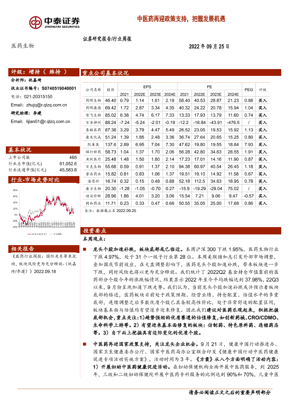 【中泰证券】【20220925】医药生物行业周报:中医药再迎政策支持,把握发展机遇-11页