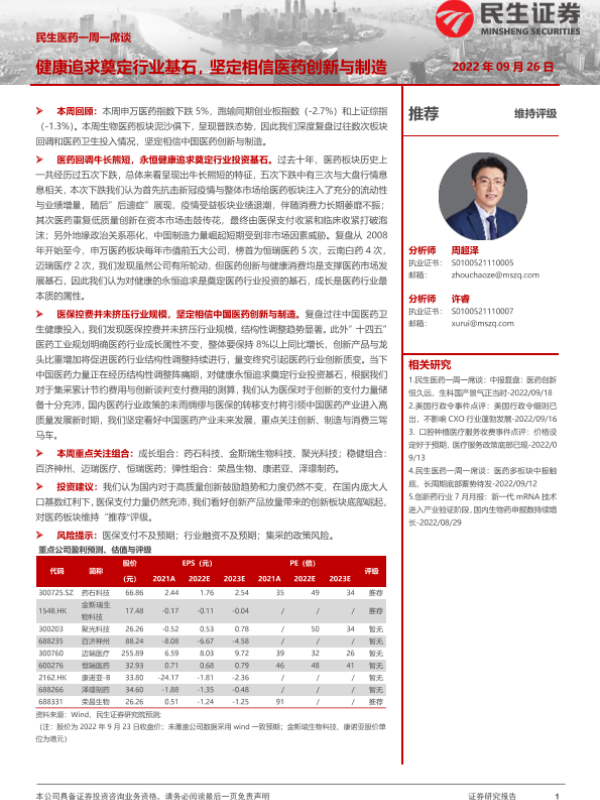 【民生证券】【20220926】健康追求奠定行业基石,坚定相信医药创新与制造-11页