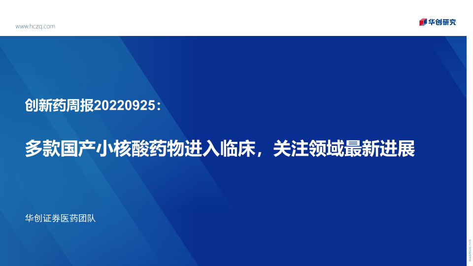 【华创证券】【20220926】创新药周报:多款国产小核酸药物进入临床,关注领域最新进展-33页