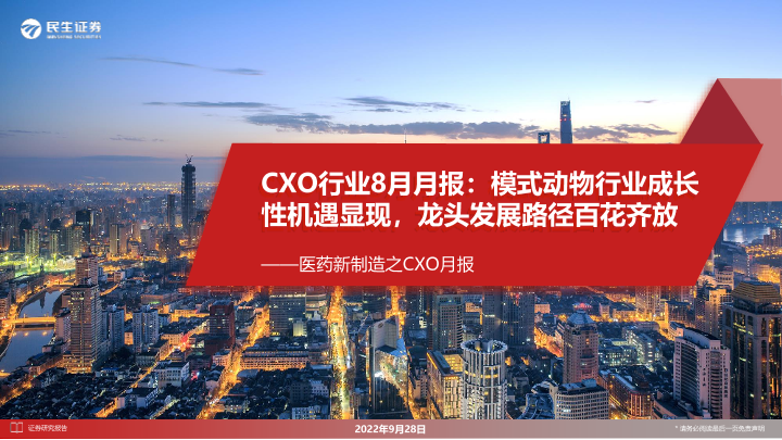 【民生证券】【20220928】医药新制造之CXO月报:模式动物行业成长性机遇显现,龙头发展路径百花齐放-29页