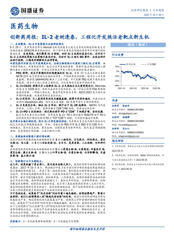 【国盛证券】【20221009】创新药周报:IL-2老树逢春,工程化开发焕活老靶点新生机-29页
