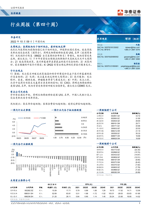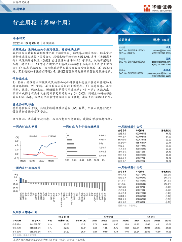 【华泰证券】【20221009】医药健康行业周报(第四十周)-13页