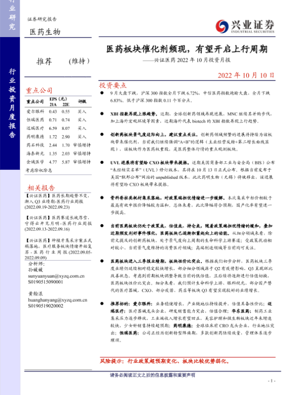 【兴业证券】【20221010】医药板块催化剂频现,有望开启上行周期-20页