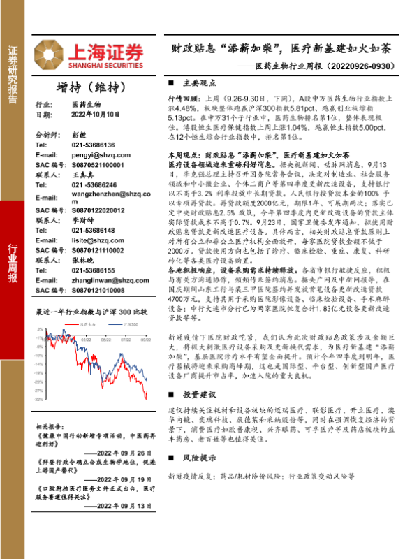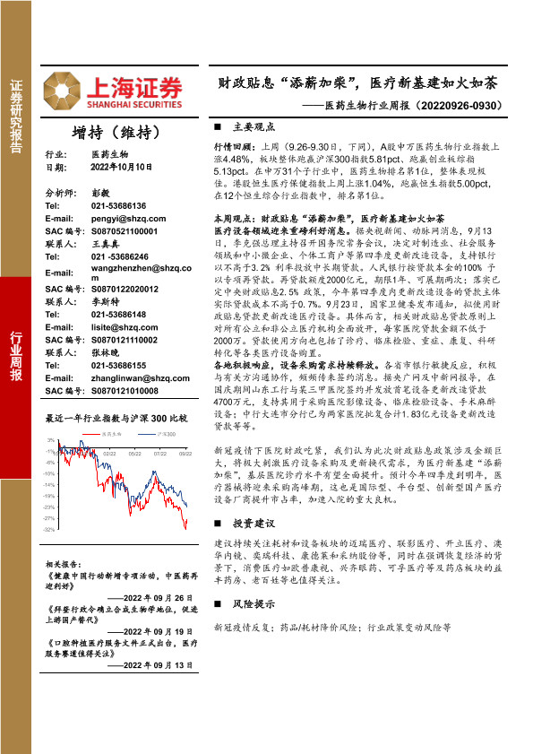 【上海证券】【20221010】医药生物行业周报:财政贴息“添薪加柴”,医疗新基建如火如荼-36页