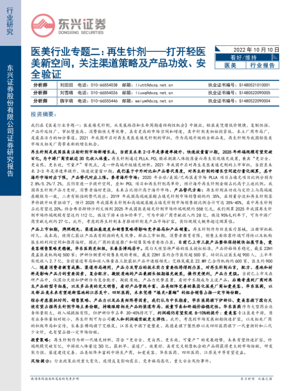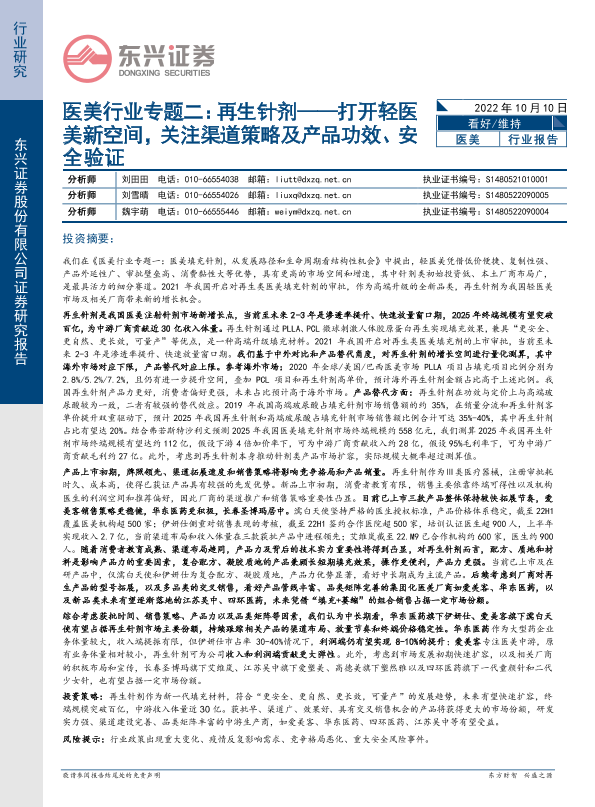 【东兴证券】【20221010】医美行业专题二:再生针剂——打开轻医美新空间,关注渠道策略及产品功效、安全验证-21页