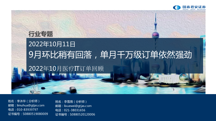 【国泰君安证券】【20221011】2022年10月医疗IT订单回顾-16页