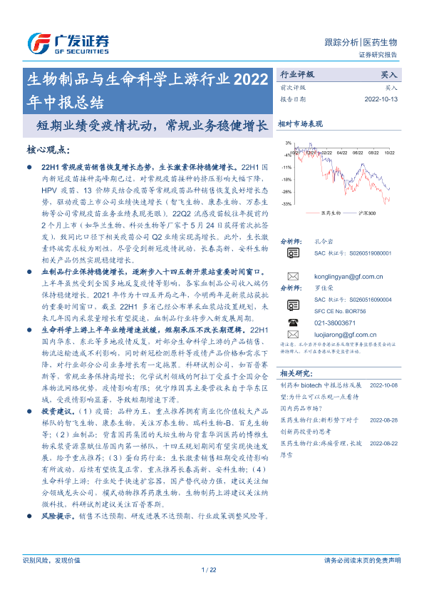 【广发证券】【20221013】生物制品与生命科学上游行业中报总结-22页
