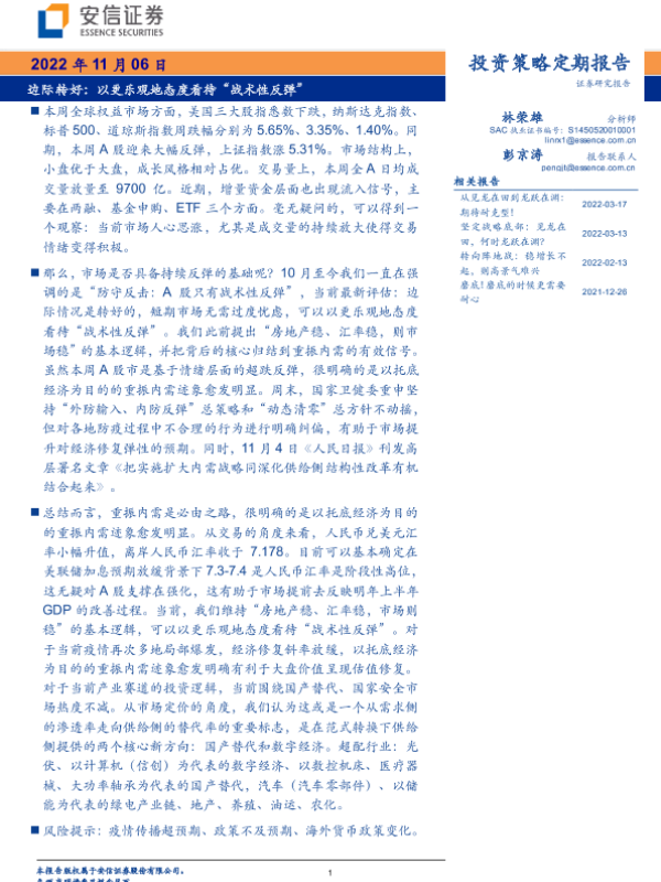 【安信证券】【20221106】投资策略定期报告:边际转好:以更乐观地态度看待“战术性反弹”-30页