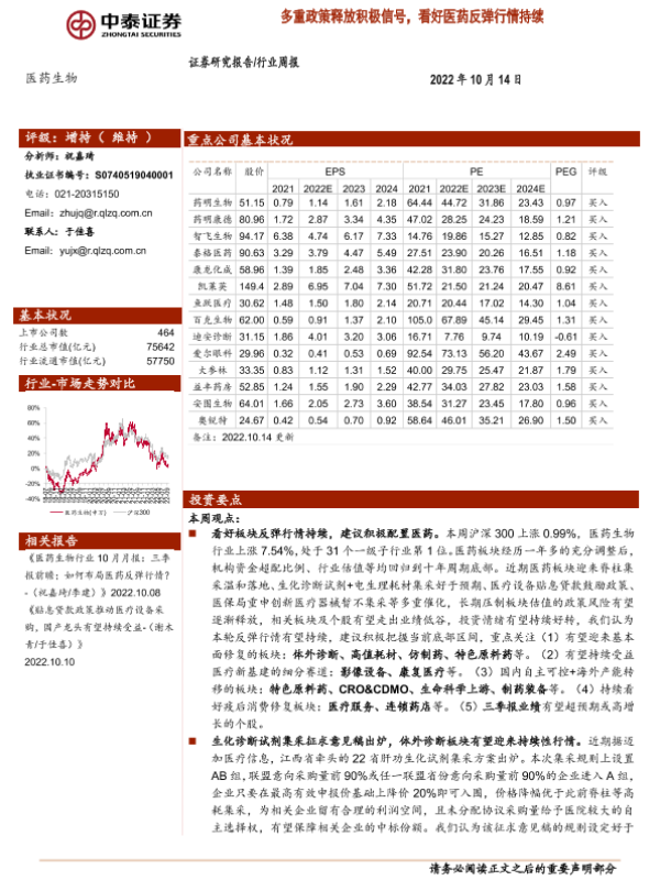 【中泰证券】【20221014】多重政策释放积极信号,看好医药反弹行情持续-12页