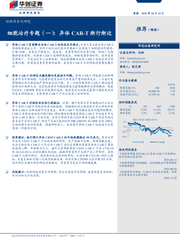 【华创证券】【20221015】创新药系列研究:细胞治疗专题(一):异体CAR-T渐行渐近-31页