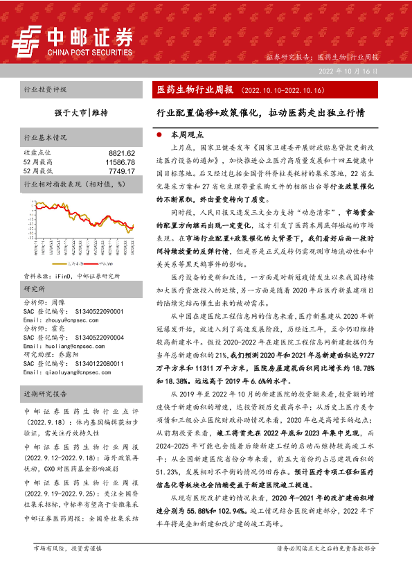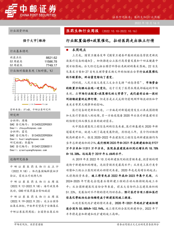 【中邮证券】【20221016】医药生物行业周报:行业配置偏移+政策催化,拉动医药走出独立行情-18页