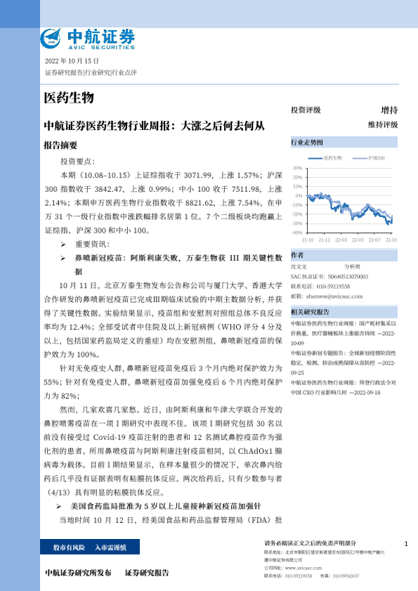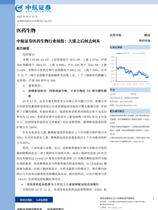 【中航证券】【20221015】医药生物行业周报:大涨之后何去何从-18页