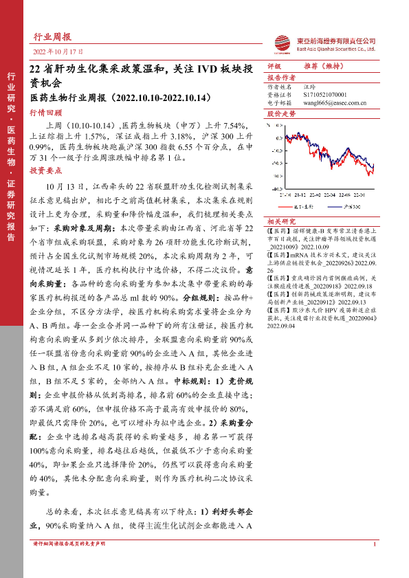【东亚前海证券】【20221017】22省肝功生化集采政策温和,关注IVD板块投资机会-14页