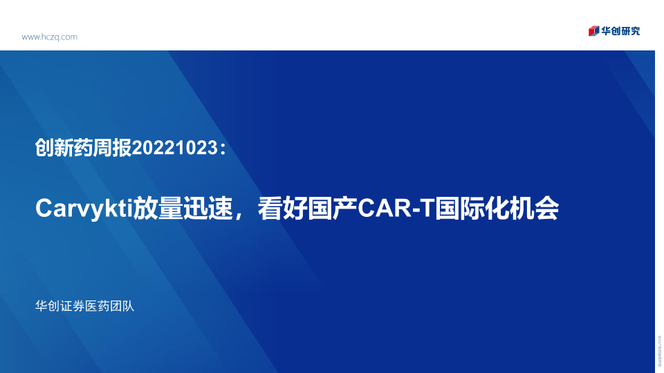 【华创证券】【20221023】创新药周报:Carvykti放量迅速,看好国产CAR-T国际化机会-30页