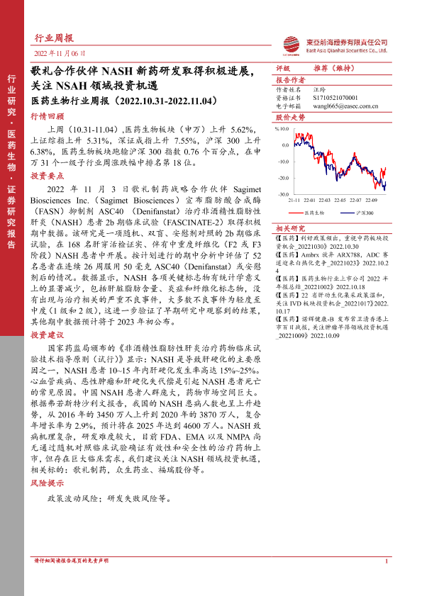 【东亚前海证券】【20221106】医药生物行业周报:歌礼合作伙伴NASH新药研发取得积极进展-13页