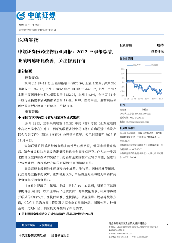 【中航证券】【20221105】2022三季报总结,业绩增速环比改善,关注修复行情-22页