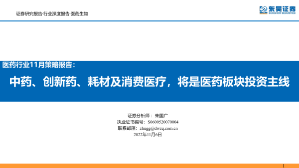 【东吴证券】【20221106】医药行业11月策略报告:中药、创新药、耗材及消费医疗将是医药板块投资主线-49页