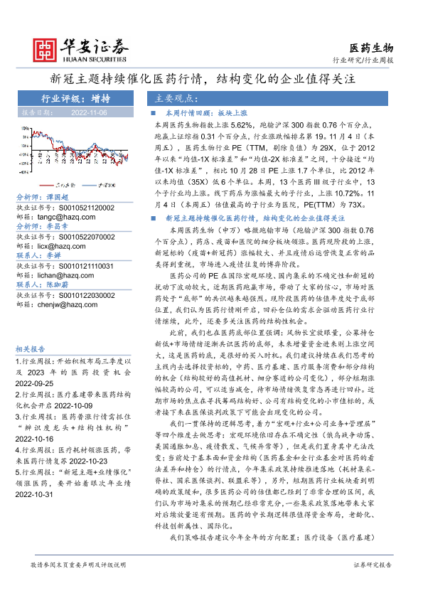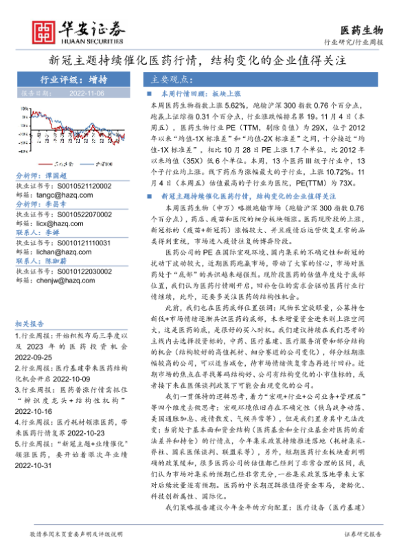 【华安证券】【20221106】医药生物行业周报:新冠主题持续催化医药行情,结构变化的企业值得关注-28页