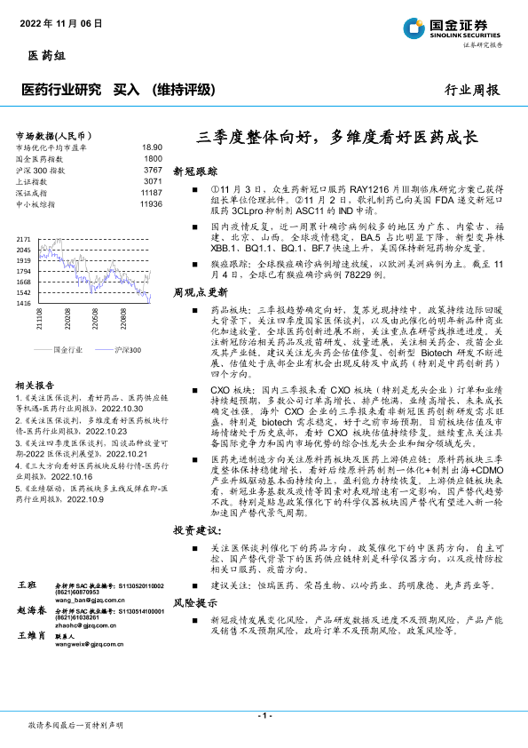 【国金证券】【20221106】三季度整体向好,多维度看好医药成长-32页