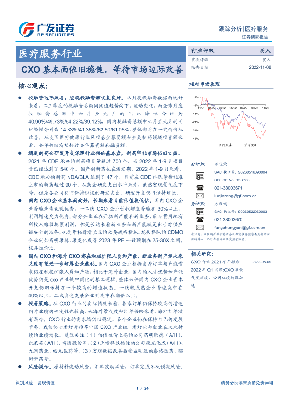 【广发证券】【20221108】医疗服务行业:CXO基本面依旧稳健,等待市场边际改善-24页