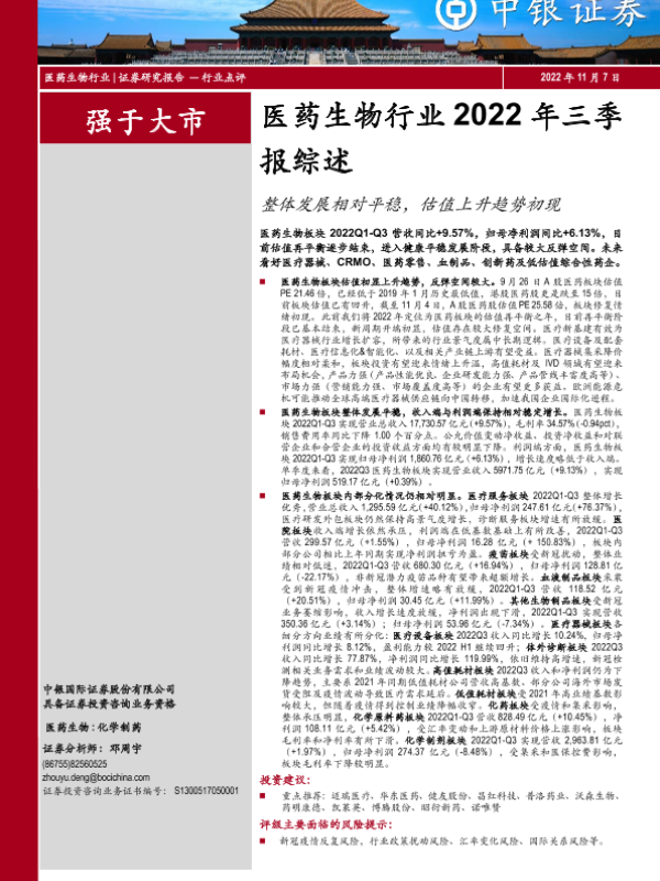 【中银证券】【20221107】医药生物行业2022年三季报综述-19页