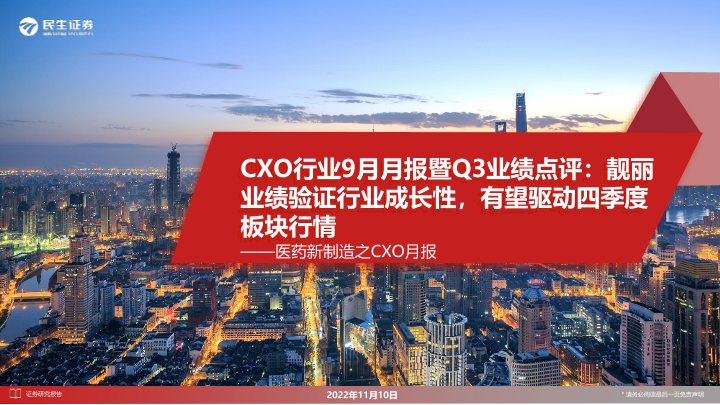 【民生证券】【20221110】CXO行业9月月报暨Q3业绩点评:靓丽业绩验证行业成长性,有望驱动四季度板块行情-32页