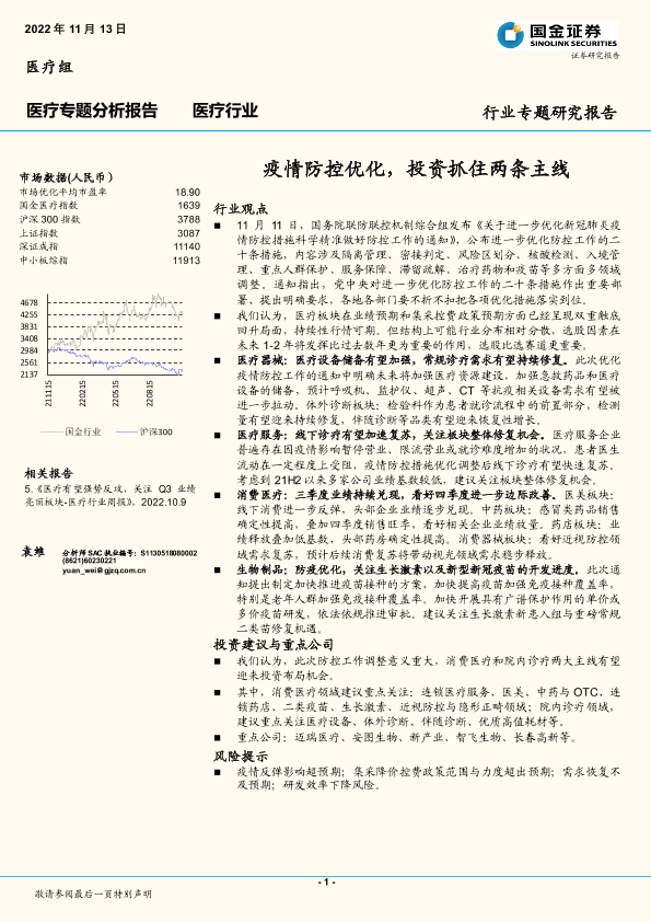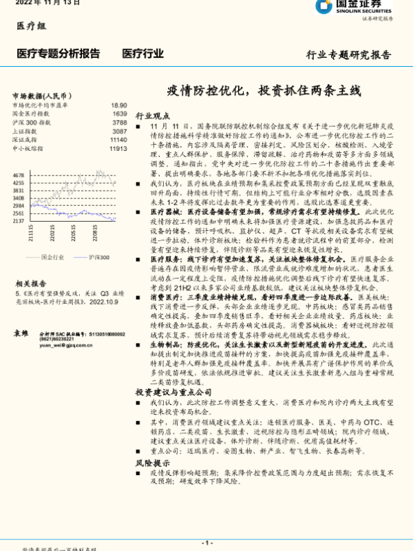 【国金证券】【20221113】医疗专题分析报告:疫情防控优化,投资抓住两条主线-13页