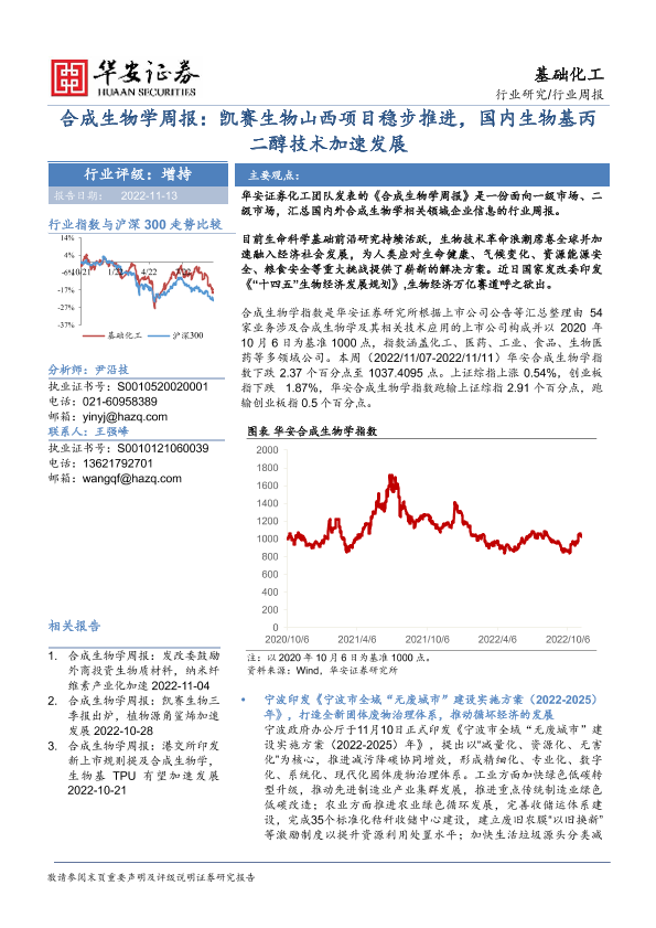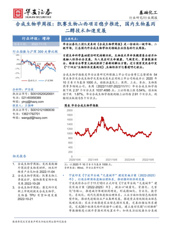 【华安证券】【20221113】合成生物学周报:凯赛生物山西项目稳步推进,国内生物基丙二醇技术加速发展-24页