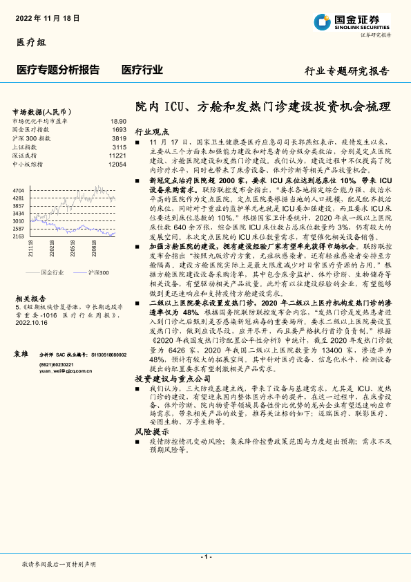 【国金证券】【20221118】医疗专题分析报告:院内ICU、方舱和发热门诊建设投资机会梳理-10页